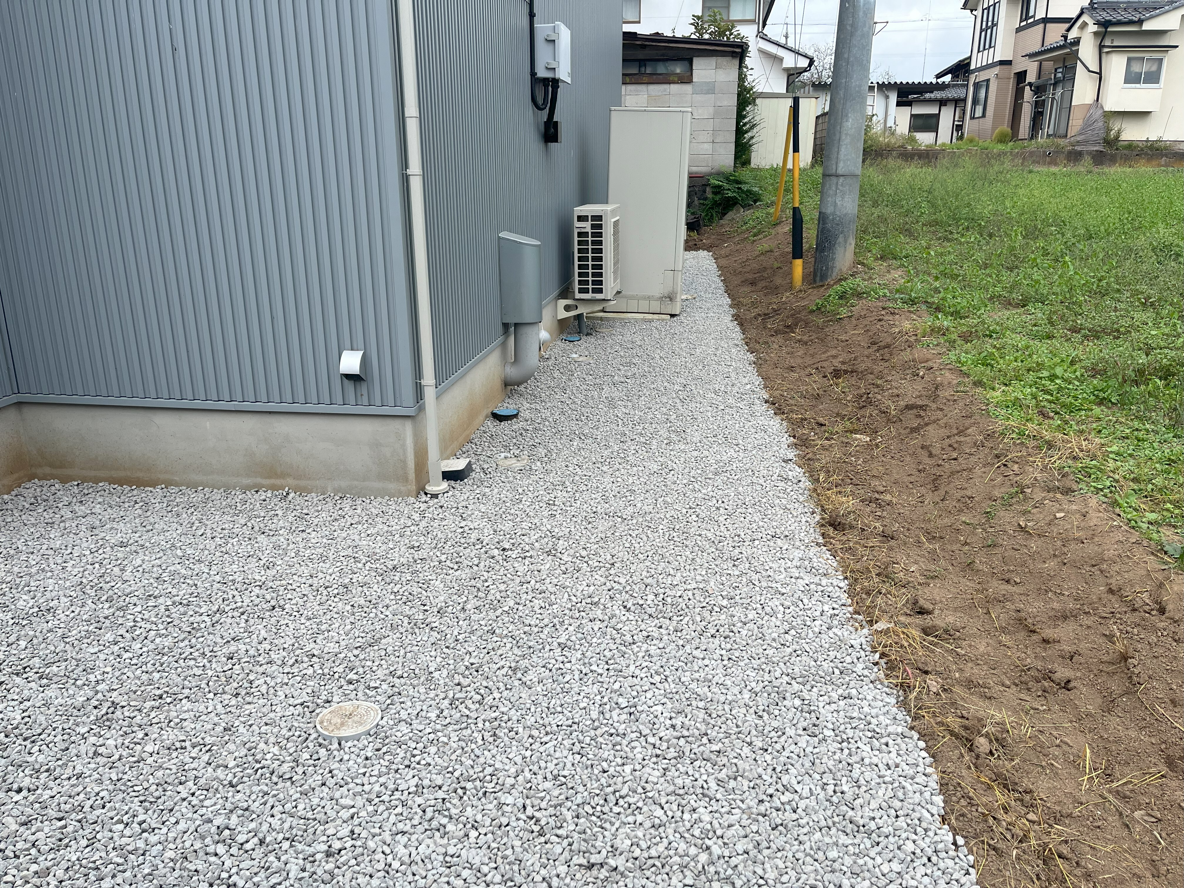 2025.05.23 防犯対策 M邸 防草・防犯対策 家の周りには防草シートを敷き、その上を砕石敷きにしました。これからの時期の雑草対策になり、砂利を踏んだ際に音がするので、防犯対策にもなります。 PDF資料はこちら